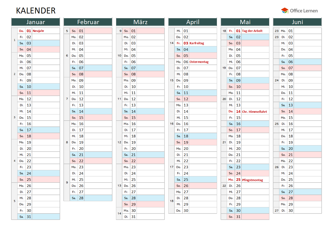 Jahreskalender mit Feiertagen (2 Seiten)Herunterladen Zurück zum Artikel |